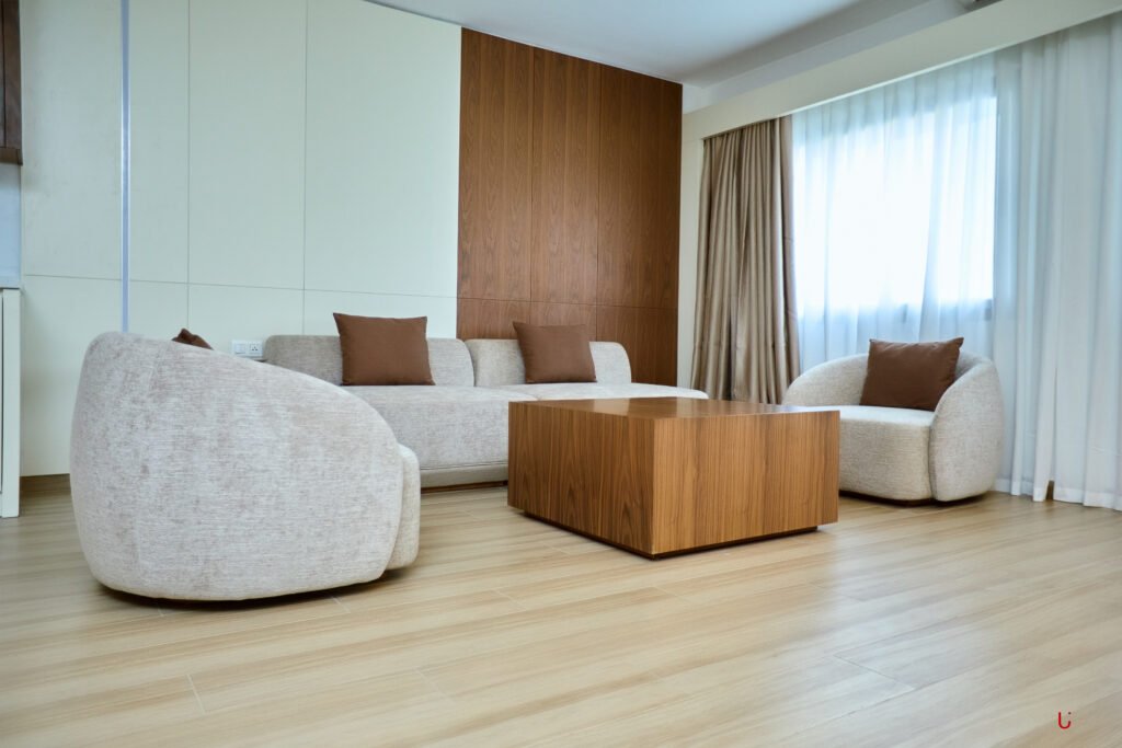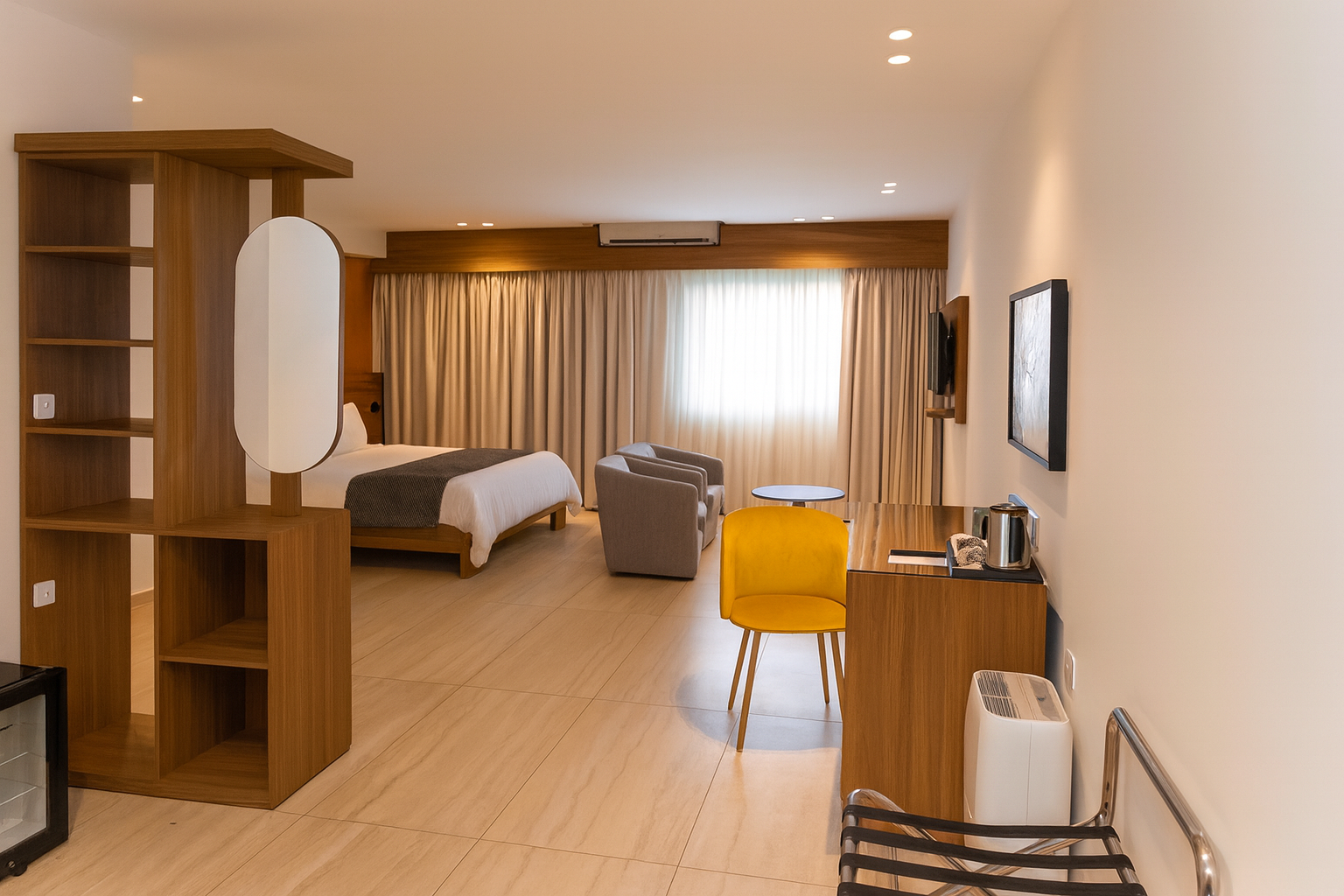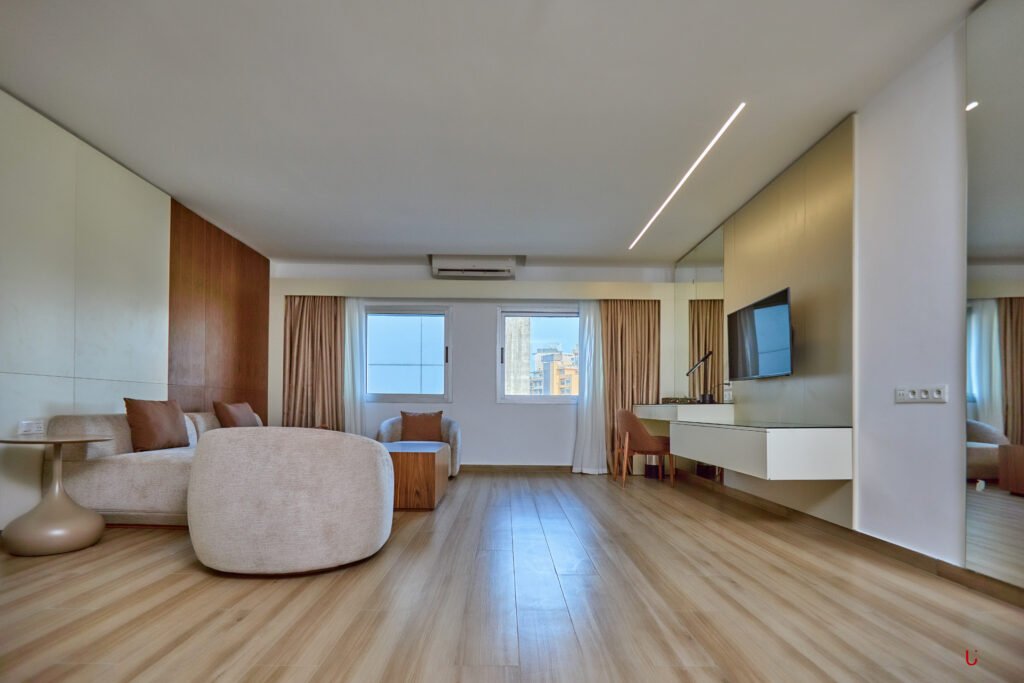 D’une surface généreuse de 60 m², notre Appartement est idéal pour les séjours prolongés ou les clients recherchant un confort supérieur. Il dispose d’un espace chambre avec lit king size, d’un salon séparé, d’un coin bureau et d’une salle de bain élégante, parfaitement équipée. Profitez de :